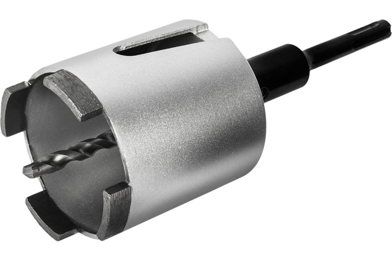 Охлаждение водой увеличивает ресурс. Оснащена центрирующим сверлом 6.5 мм и хвостовиком SDS Plus.