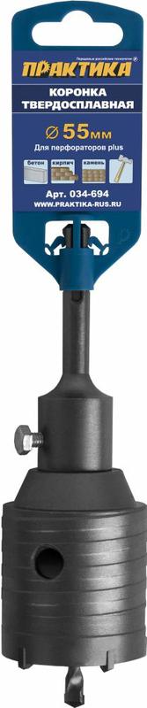 Коронка твердосплавная ПРАКТИКА SDS- Plus ударная 55 мм (1шт.) клипса*