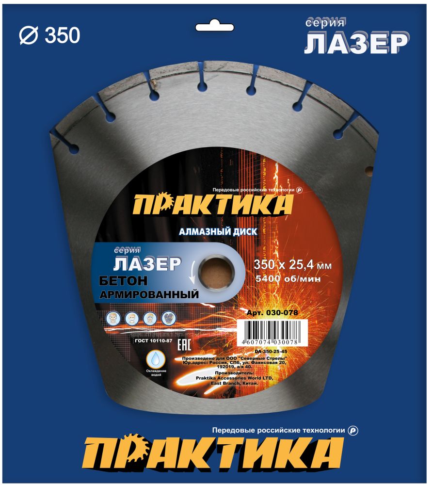 Диск алмазный сегментный ПРАКТИКА 350 х 25.4 мм, по железобетону, бетону, камню, кирпичу