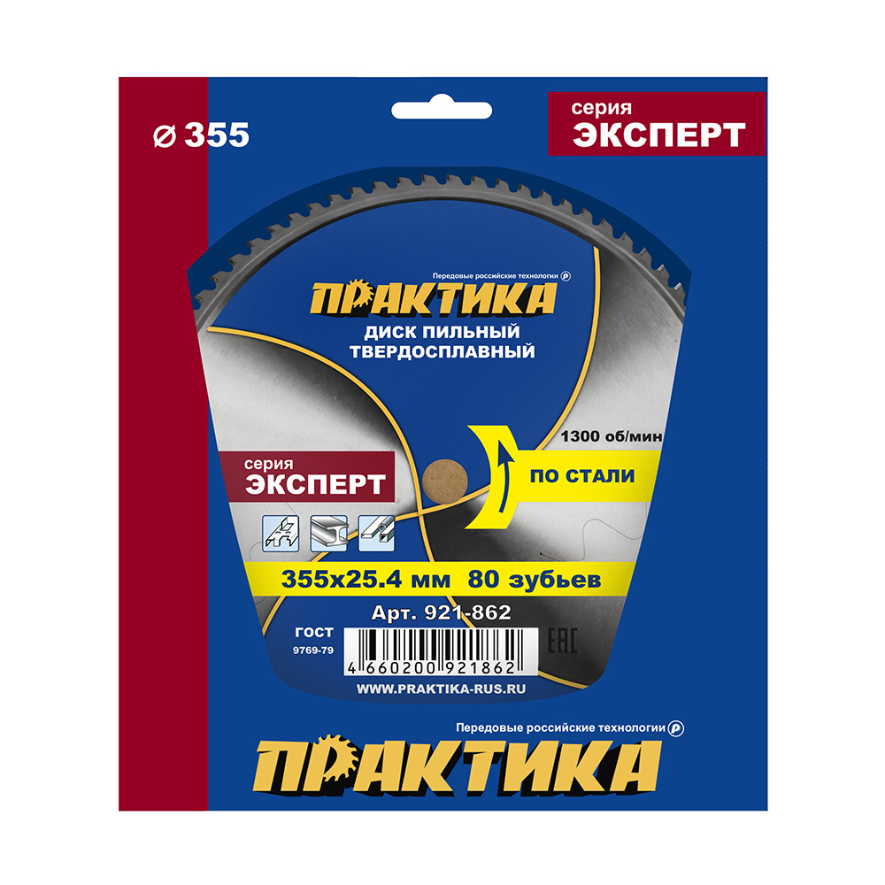 Диск пильный твердосплавный по стали ПРАКТИКА 355 х 25,4 мм, 80 зубьев