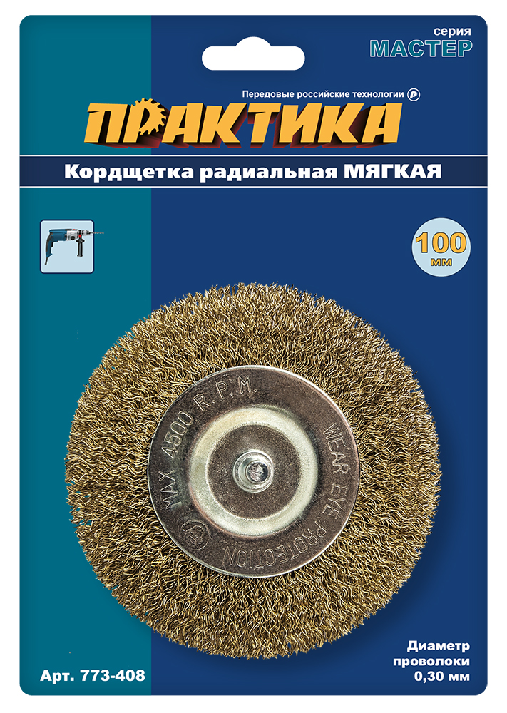 Кордщетка для дрели радиальная мягкая ПРАКТИКА 100 мм (1шт.) блистер 1/10