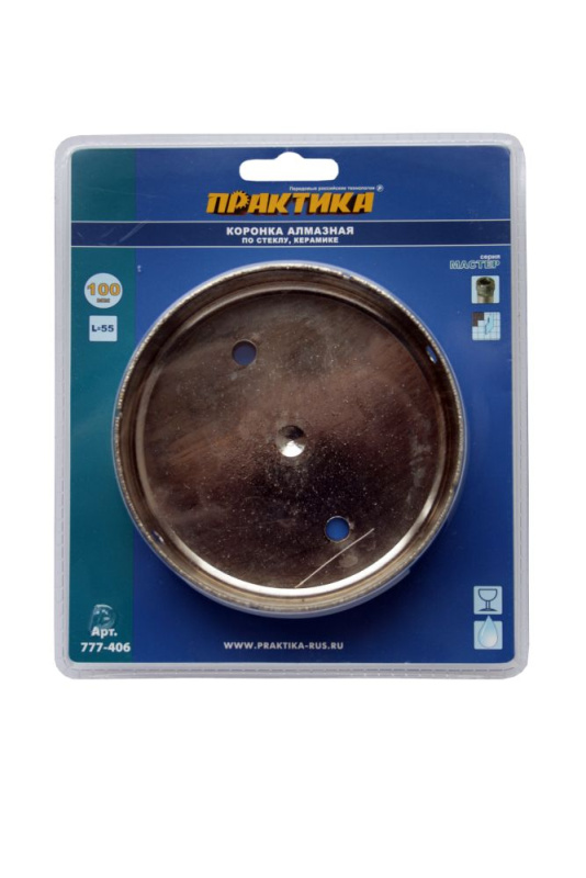 Коронка алмазная ПРАКТИКА "Мастер" по стеклу и керамике 100 мм (1шт) блистер*