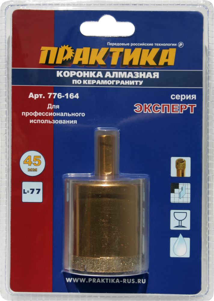 Коронка алмазная ПРАКТИКА "Эксперт" по керамограниту 45мм (1шт) блистер