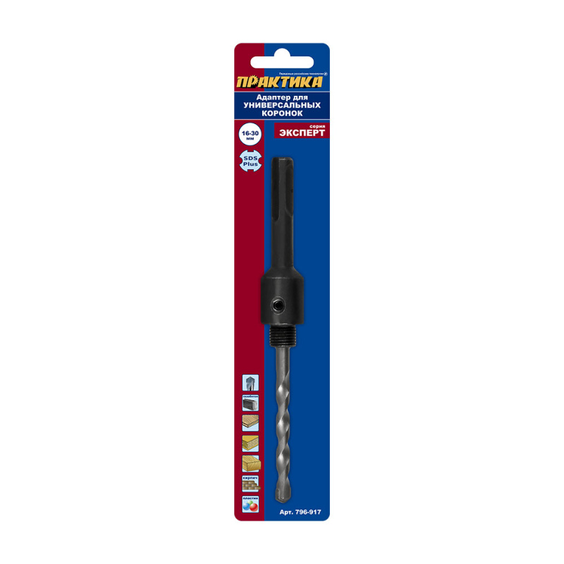 Адаптер ПРАКТИКА держатель со сверлом для универсальных коронок 16-30мм, хвостовик SDS-plus