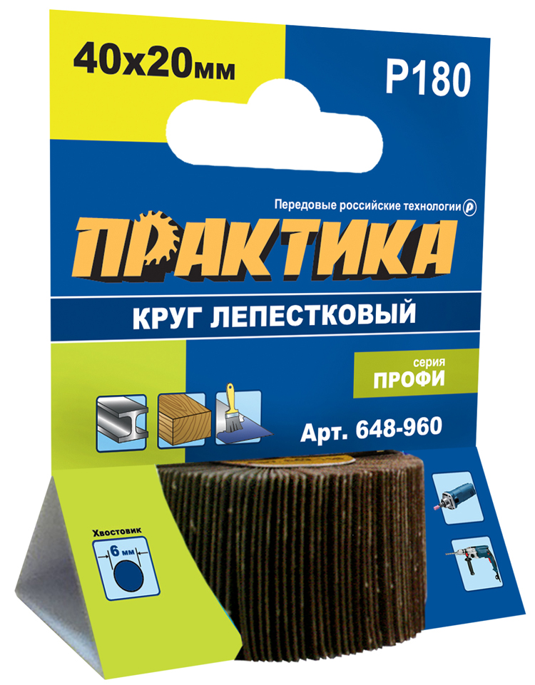 Круг лепестковый с оправкой ПРАКТИКА 40х20мм, P180, хвостовик 6 мм, серия Профи