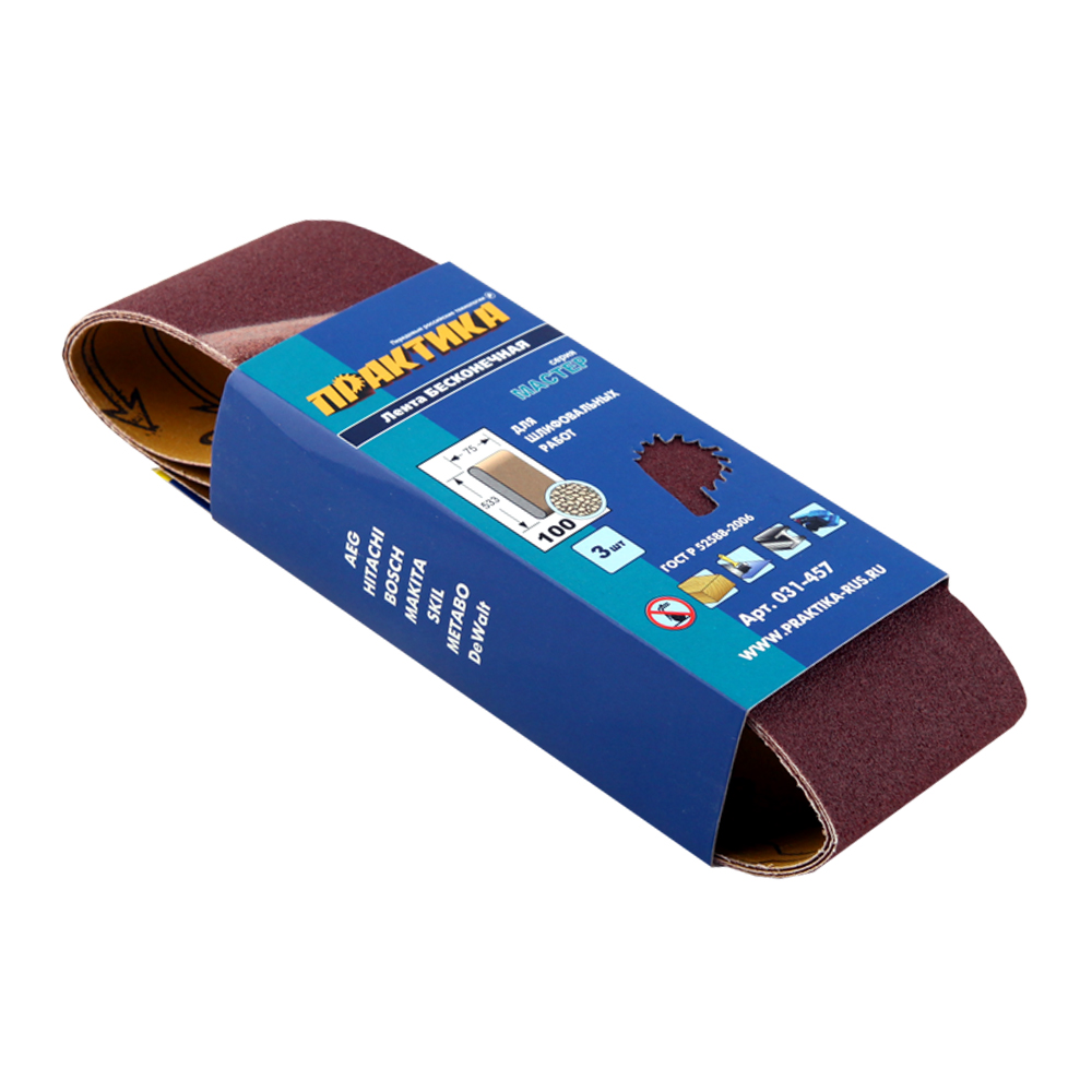 Лента шлифовальная ПРАКТИКА 75 х 533 мм P100 (3шт.) картонный подвес**