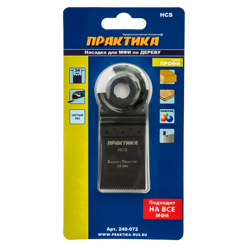 Насадка для МФИ ПРАКТИКА режущая пазовая прямая, HCS, по дереву, 34 мм, мелкий зуб