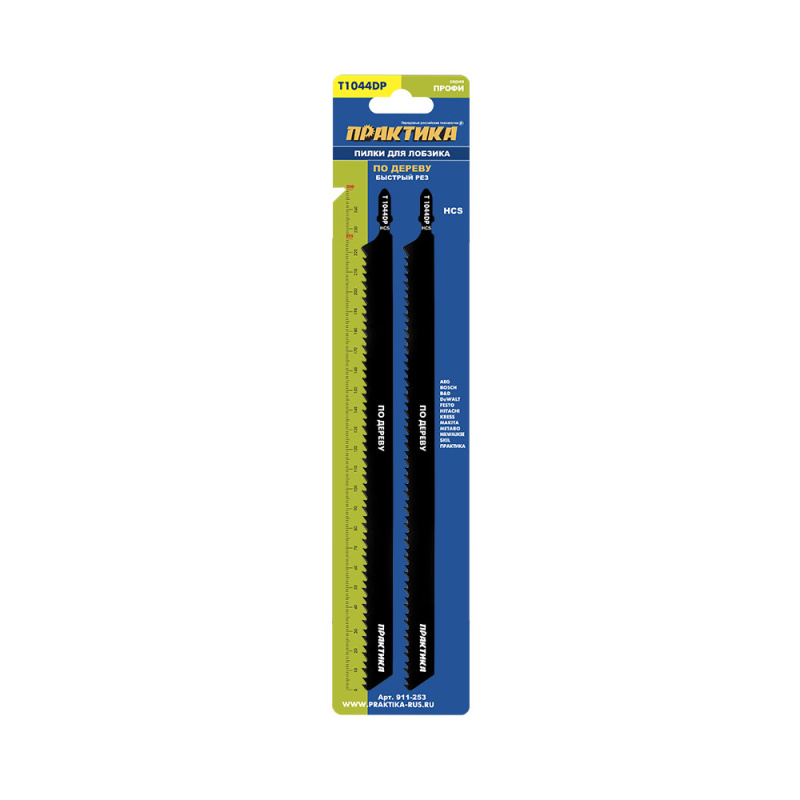 Пилки для лобзика по дереву, ДСП ПРАКТИКА тип T1044DP 250 х 225 мм, быстрый рез, шаг 4мм, HCS(2шт)