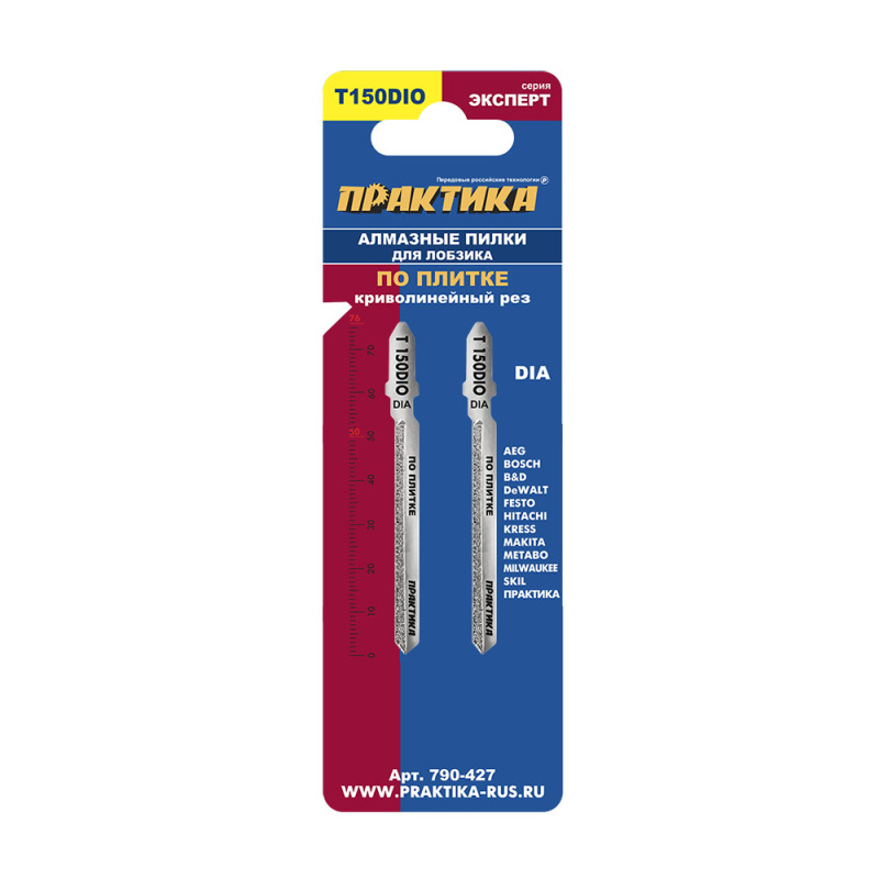 Пилки для лобзика по плитке ПРАКТИКА тип T150DIO 76 х 50 мм, криволинейный рез, АЛМАЗНЫЕ (2шт.)