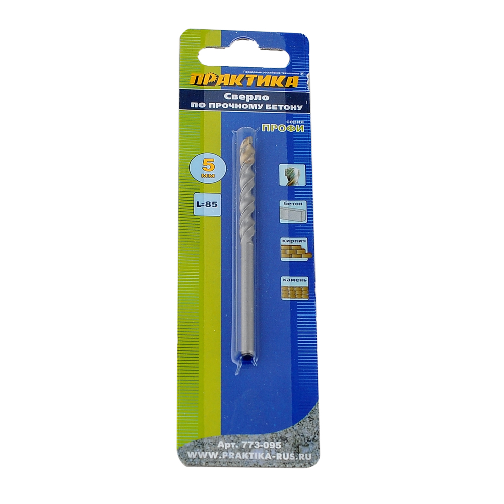 Сверло по бетону ПРАКТИКА 5 х 85 мм (1шт.) блистер серия Профи