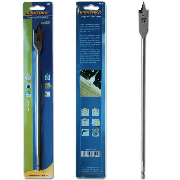 Сверло по дереву перовое ПРАКТИКА 17 х 300 мм (1шт.) блистер