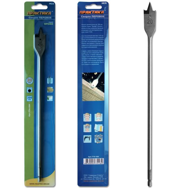 Сверло по дереву перовое ПРАКТИКА 20 х 300 мм (1шт.) блистер