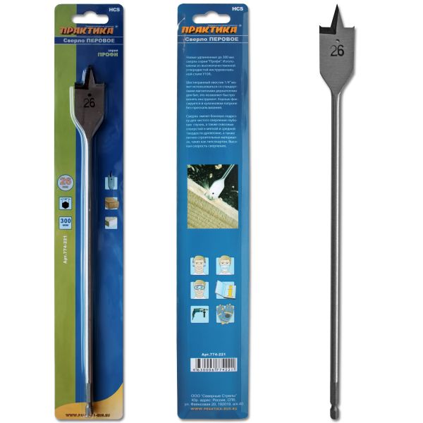Сверло по дереву перовое ПРАКТИКА 26 х 300 мм (1шт.) блистер
