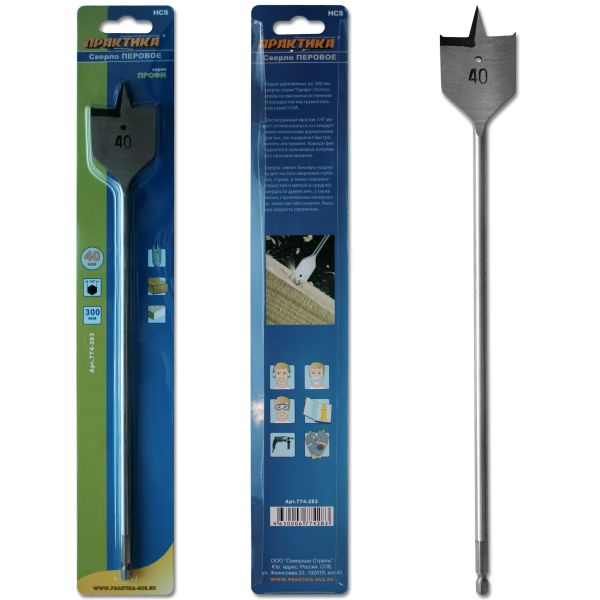 Сверло по дереву перовое ПРАКТИКА 40 х 300 мм (1шт.) блистер