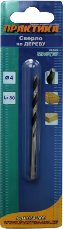 Сверло по дереву ПРАКТИКА 4 х 80 мм (1шт.) блистер, серия Мастер*