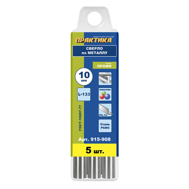 Сверло по металлу в групповой упаковке ПРАКТИКА 10,0 x 133 мм (5 шт) пластиковая коробка