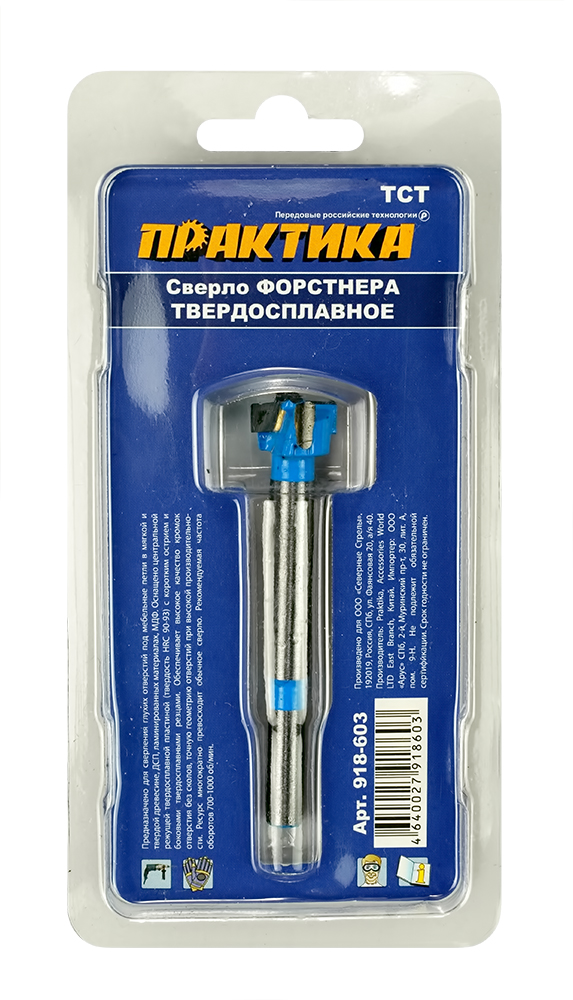 Сверло петельное Форстнера ПРАКТИКА 15 мм, твердосплавное, (1шт), блистер