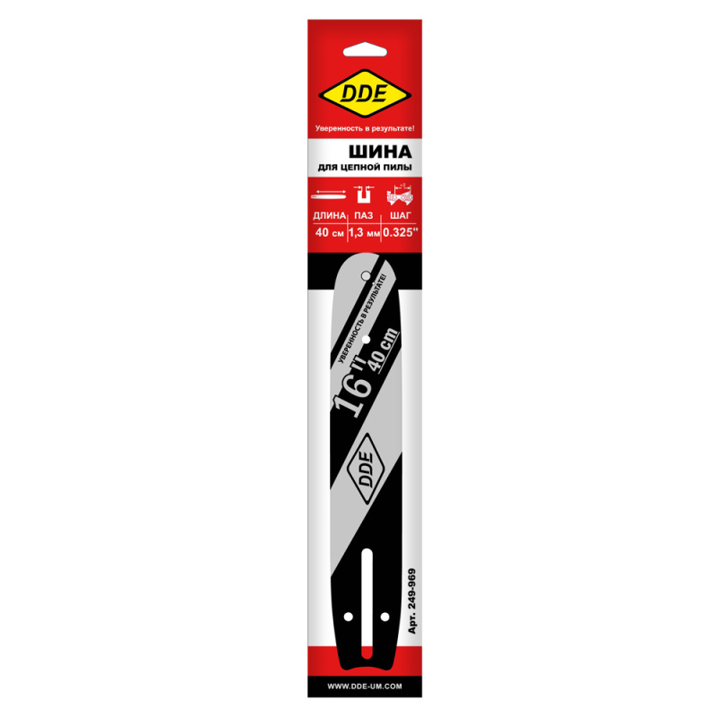 Шина пилы цепной сварная DDE 16"/40 см-325"-1.3-66z (для цепи 20BP/LP,95VPX) (Echo 325", Homelite 38