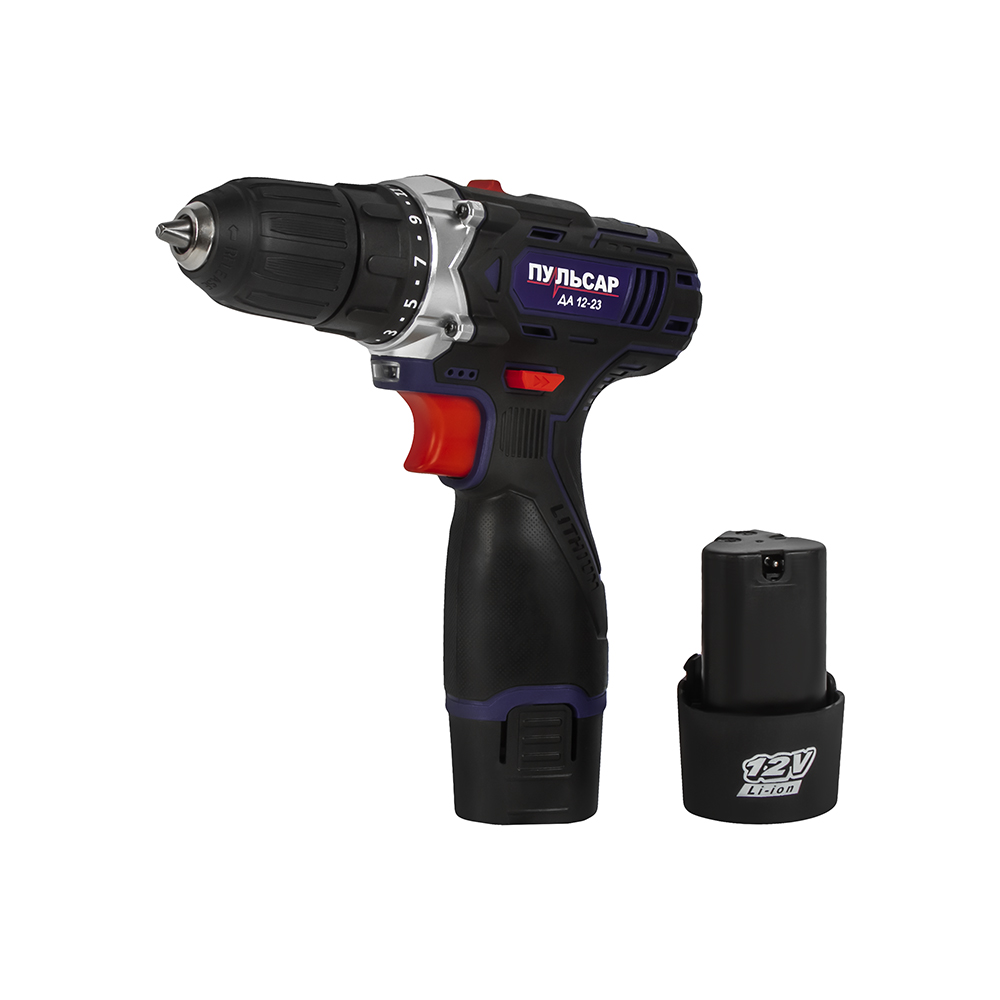 Дрель аккумуляторная ПУЛЬСАР ДА 12-23 (12В, 23Hm, Li-on, 1,5Ah, 2 акк., 1.3 кг,коробка)