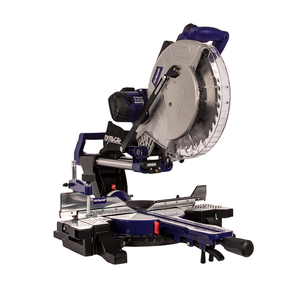 Пила торцовочная ПУЛЬСАР ПТН 305-2000 (2000Вт, 305х30мм, рез 105х335мм, рем. перед, направл., лазер.
