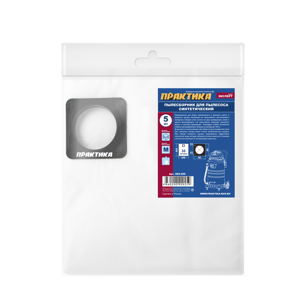 Мешки ПРАКТИКА для пылесосов MAKITA 440, NILFISK, RUPES и др. до 36л, синтетика, уп. 5 шт, Упаковка