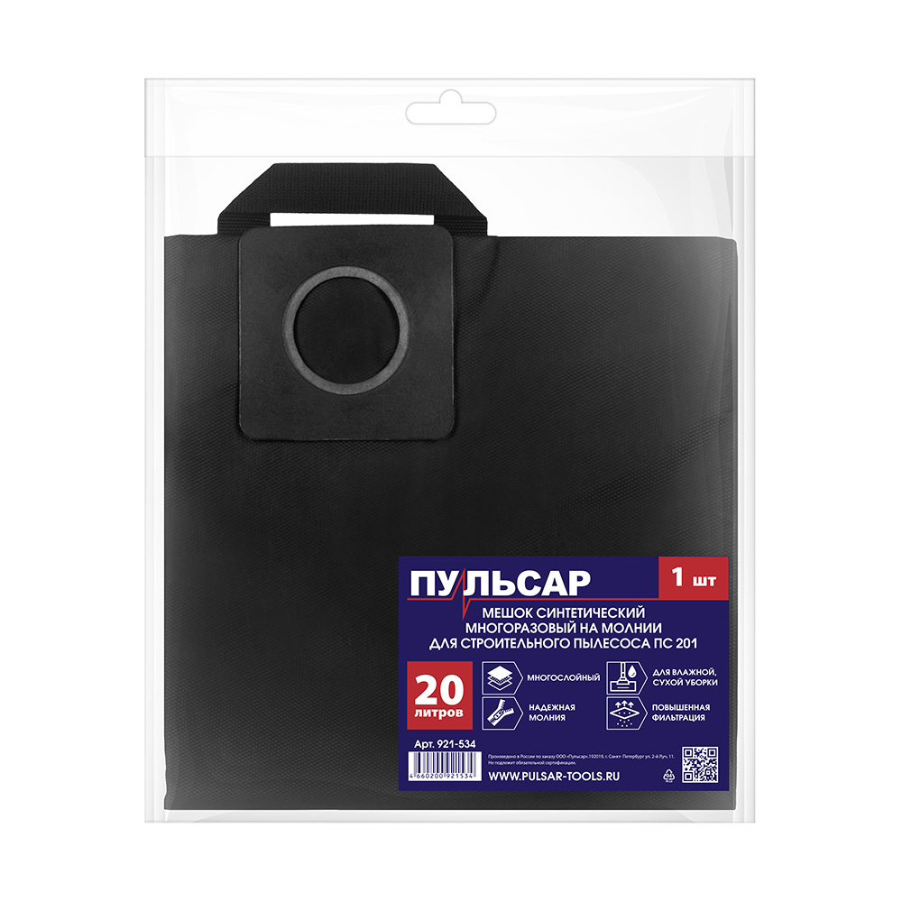 Мешок для пылесоса ПУЛЬСАР ПС 201 синтетический многоразовый 20 литров (1 шт)