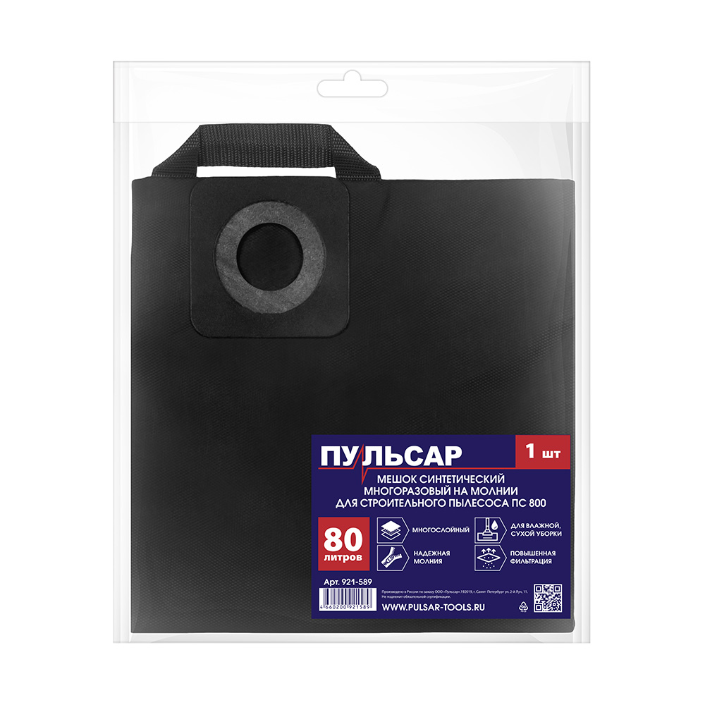 Мешок для пылесоса ПУЛЬСАР ПС 800 синтетический многоразовый 80 литров (1 шт)