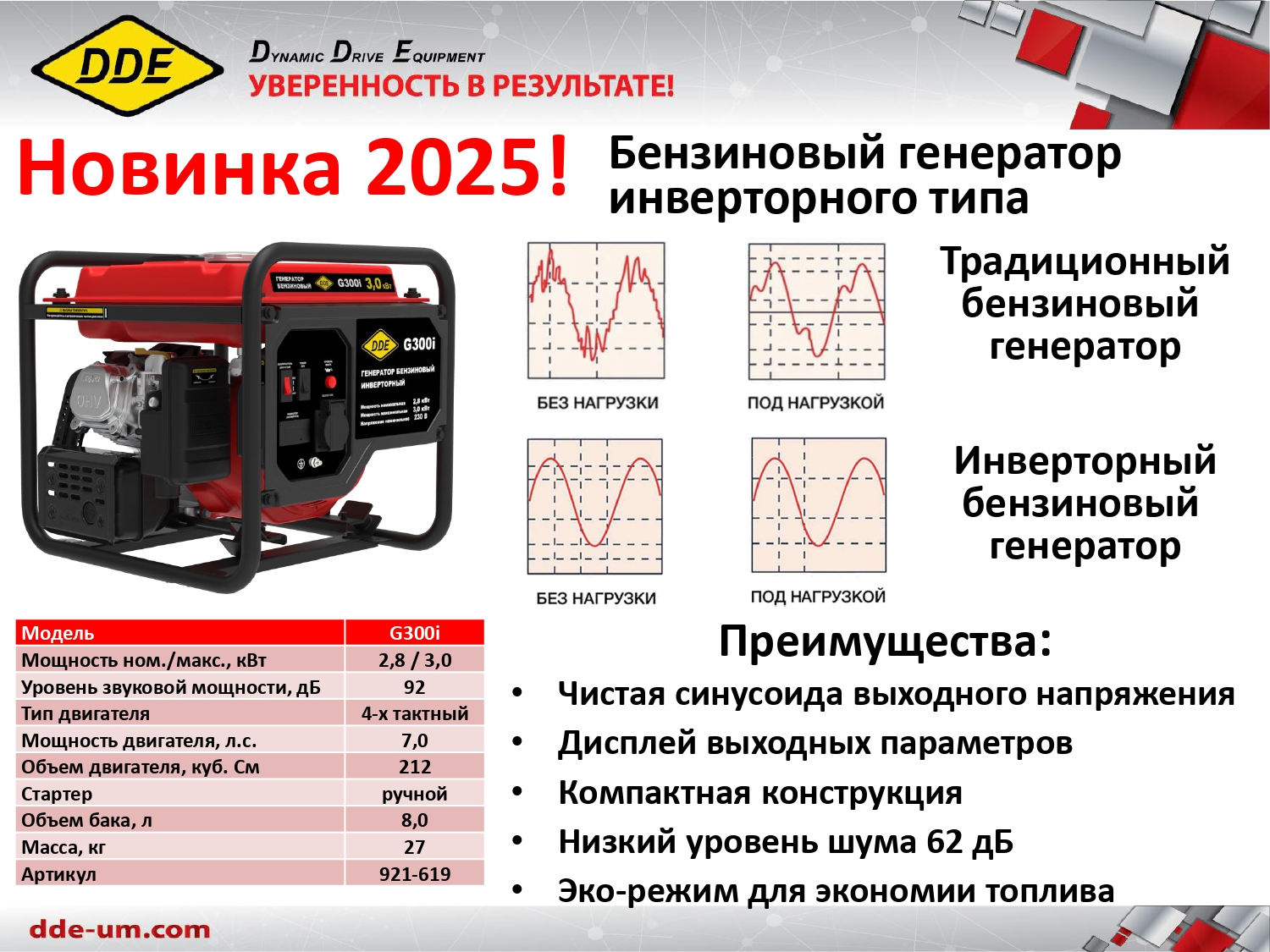 Генератор бензиновый инверторный DDE G300i (1ф, 2,8/3,0 кВт, 7 л.с)