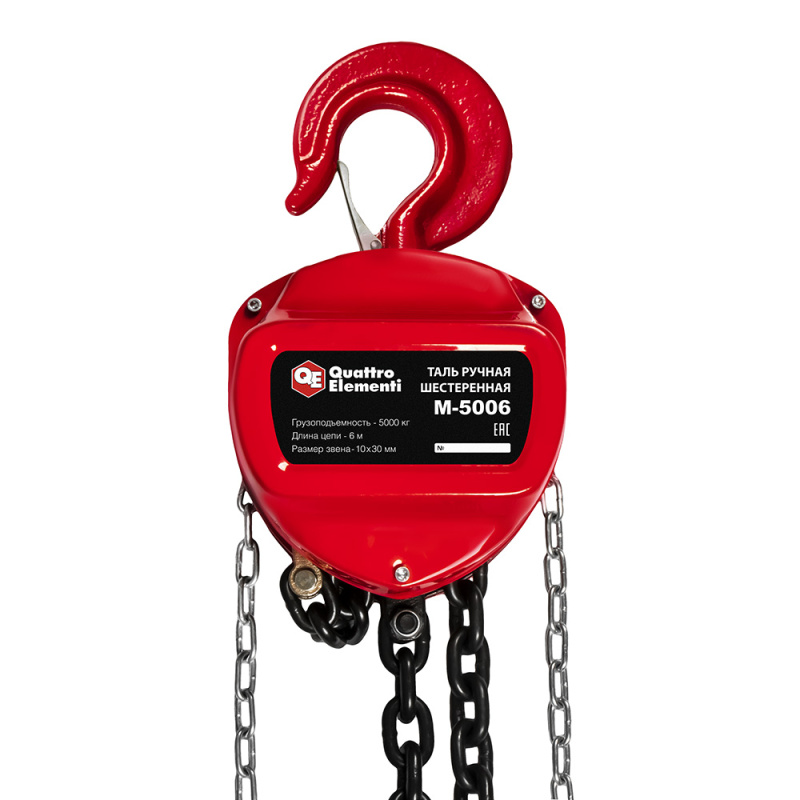 Таль ручная шестеренная QUATTRO ELEMENTI M-5006 (5000 кг, цепь 6 м)
