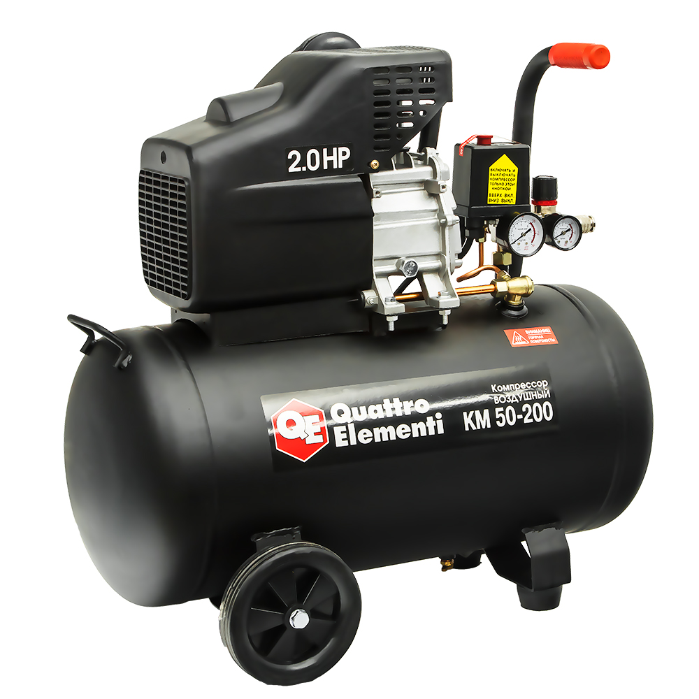 Компрессор поршневой масляный QUATTRO ELEMENTI KM 50-200 ( 200л/мин, 50л, 2л.с, 8 бар, 29кг)*