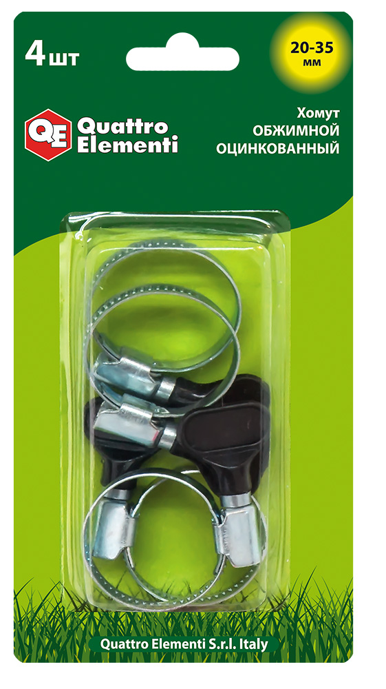 Хомут обжимной QUATTRO ELEMENTI 20-35 мм, оцинкованный, с ключом 4 шт в блистере