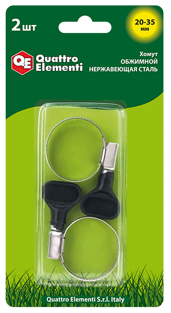 Хомут обжимной QUATTRO ELEMENTI 20-35 мм, нержавеющая сталь, с ключом, 2 шт, в блистере