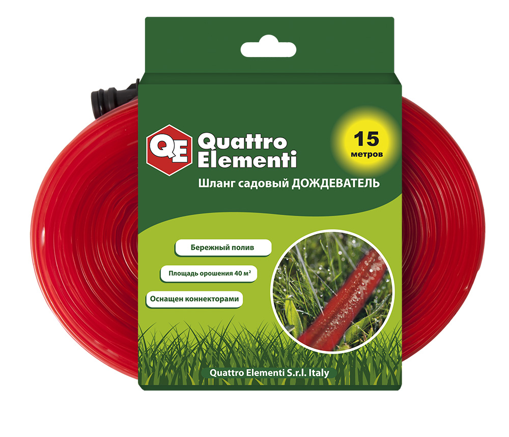 Шланг садовый QUATTRO ELEMENTI дождеватель 15 метров, диаметр 1/2", ПВХ, с фиттингами