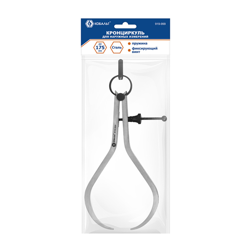 Кронциркуль КОБАЛЬТ для наружных измерений до 175 мм, С ПРУЖИНОЙ И ФИКС.ВИНТОМ, из углеродистой стал
