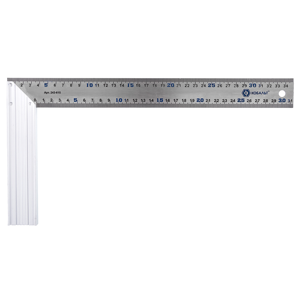 Угольник КОБАЛЬТ столярный 350 мм, нерж.сталь , алюминиевое основание 1/10