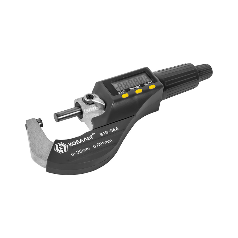 Микрометр КОБАЛЬТ цифровой, диапазон измерений 0-25 мм, точность 0,001 мм, кейс