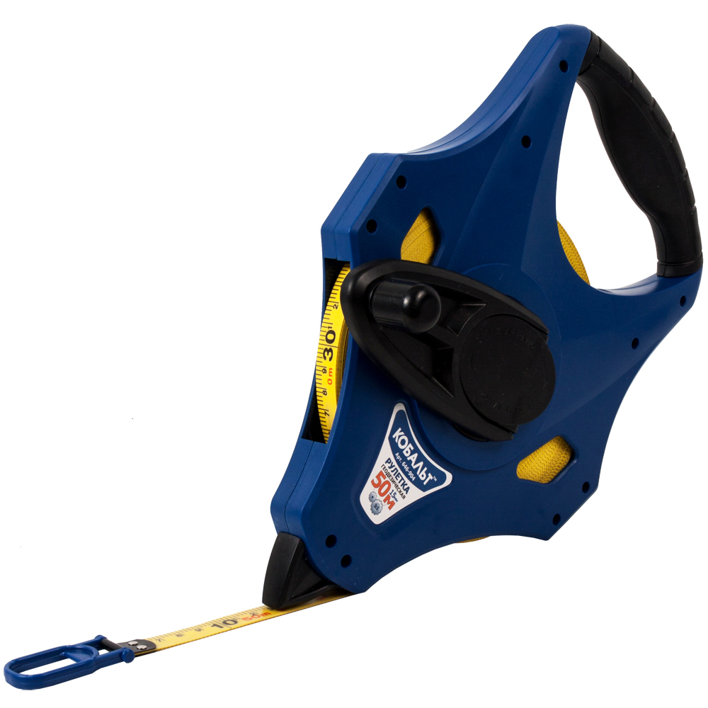 Рулетка геодезическая КОБАЛЬТ 50м x 15мм открытый корпус (фибергласовая лента, ускоренная перемотка)