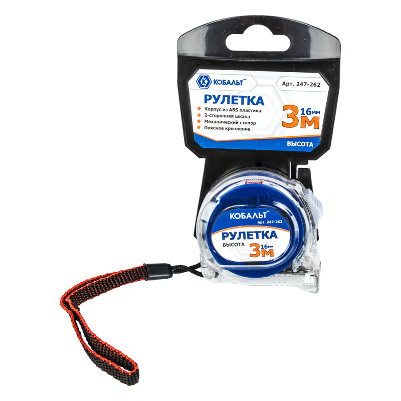 Рулетка КОБАЛЬТ Высота 3м x 16мм прозрачный корпус (мех.стопор, 2-сторонняя шакала) 1/12