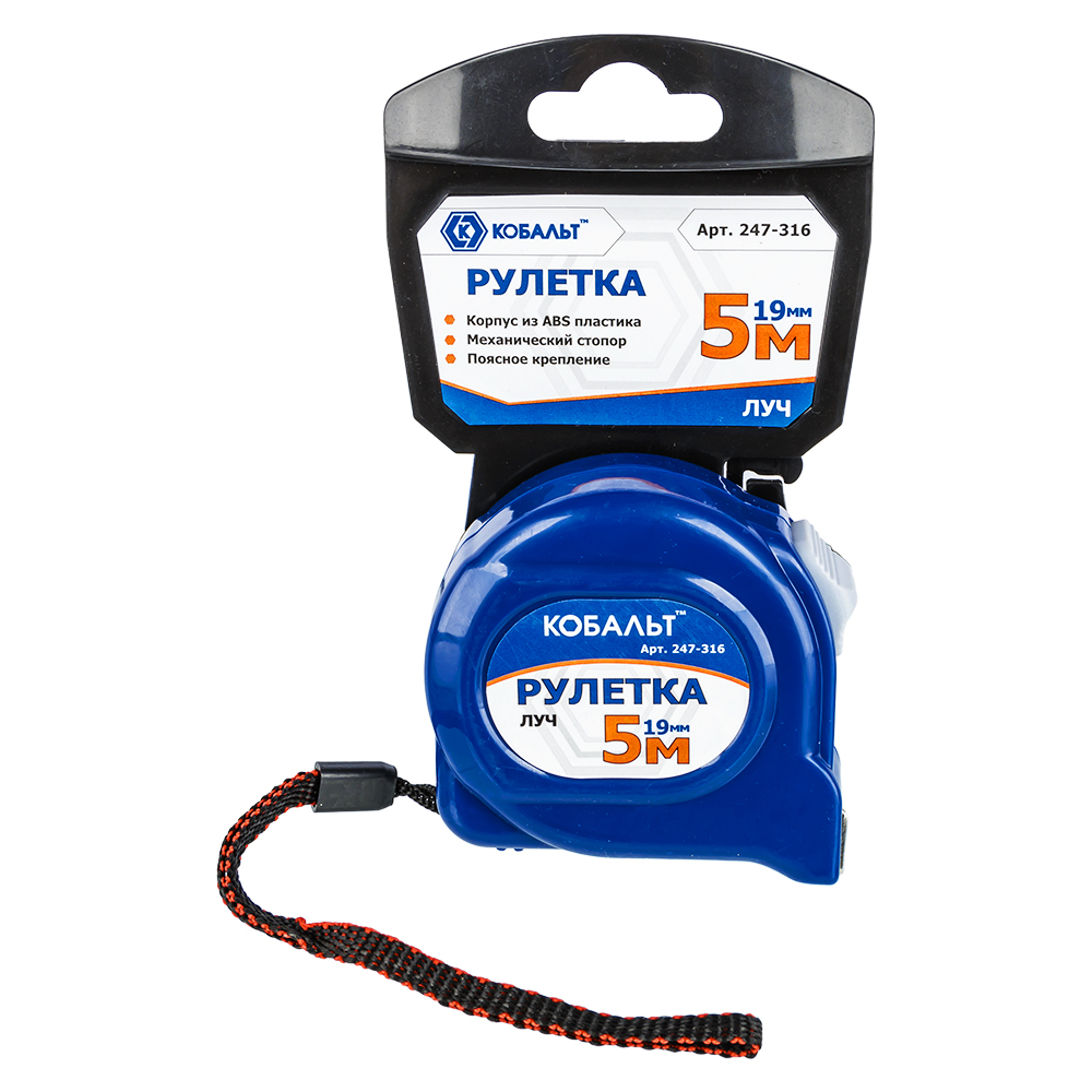Рулетка КОБАЛЬТ Луч 5м x 19мм, корпус из ABS пластика (мех.стопор, белое матов. покрытие)1/12***