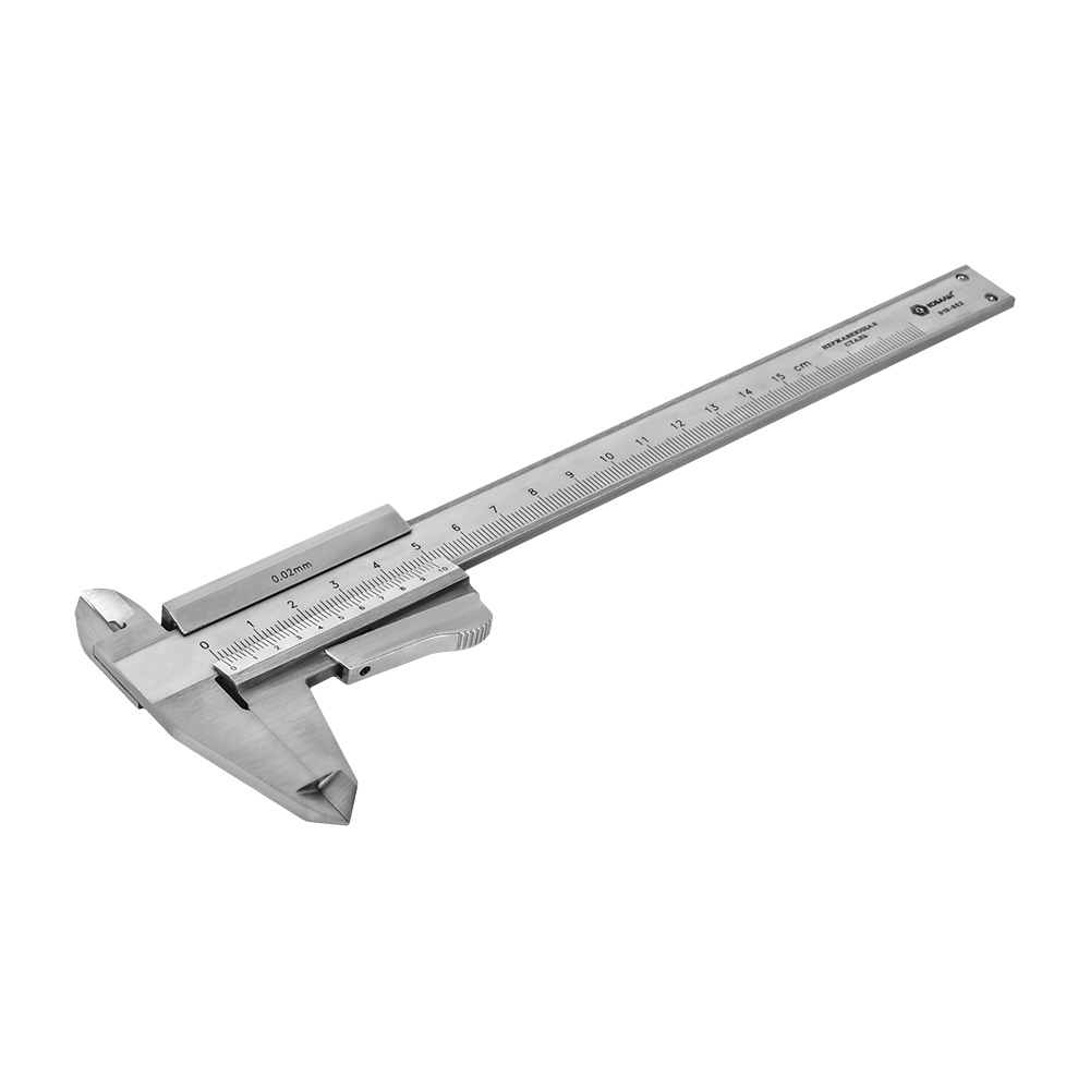 Штангенциркуль КОБАЛЬТ нониусный, ШЦ-1, открытого типа, МОНОБЛОЧНЫЙ, 150 мм, точность 0,02 мм.