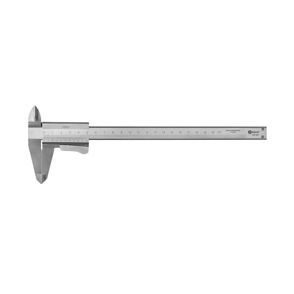 Штангенциркуль КОБАЛЬТ нониусный, ШЦ-1, открытого типа, МОНОБЛОЧНЫЙ, 200 мм, точность 0,02 мм.