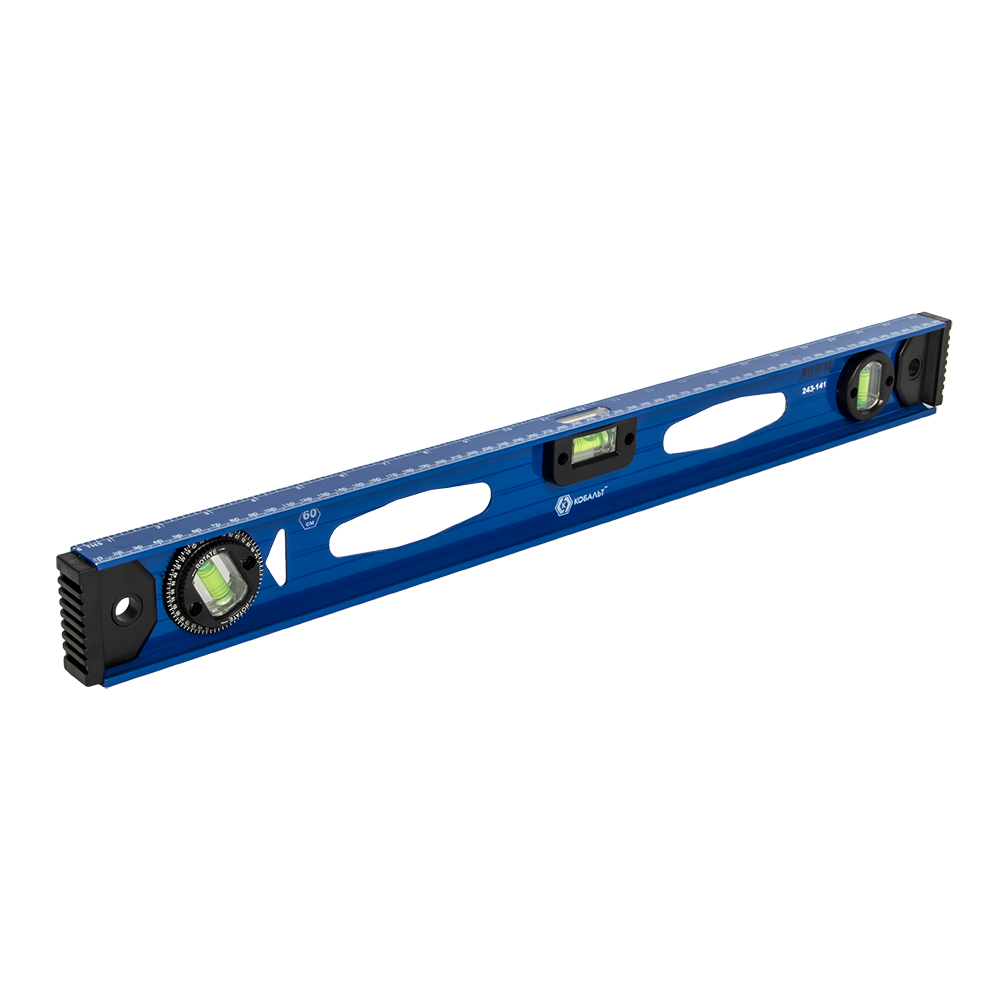 Уровень строительный КОБАЛЬТ 600 мм, профиль 25 x 60 мм, 3 глазка, 2 ручки, РЕЛЬС