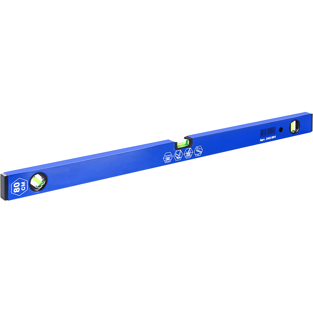 Уровень строительный КОБАЛЬТ Комфорт, 800 мм, профиль 20 x 49 мм, 3 глазка, точность 1,0 мм/м