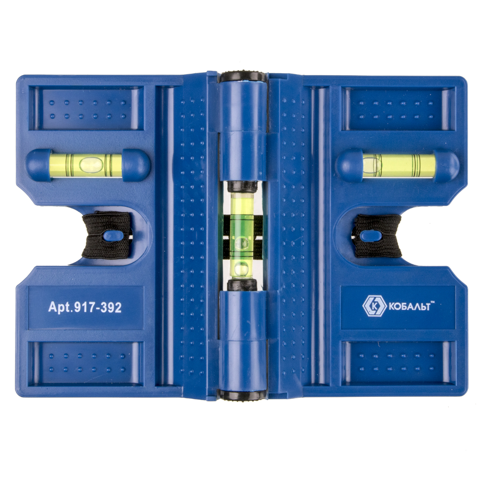 Уровень строительный КОБАЛЬТ угловой, 4 магнита, 3 глазка, точность 0,57 мм/м, пластиковый