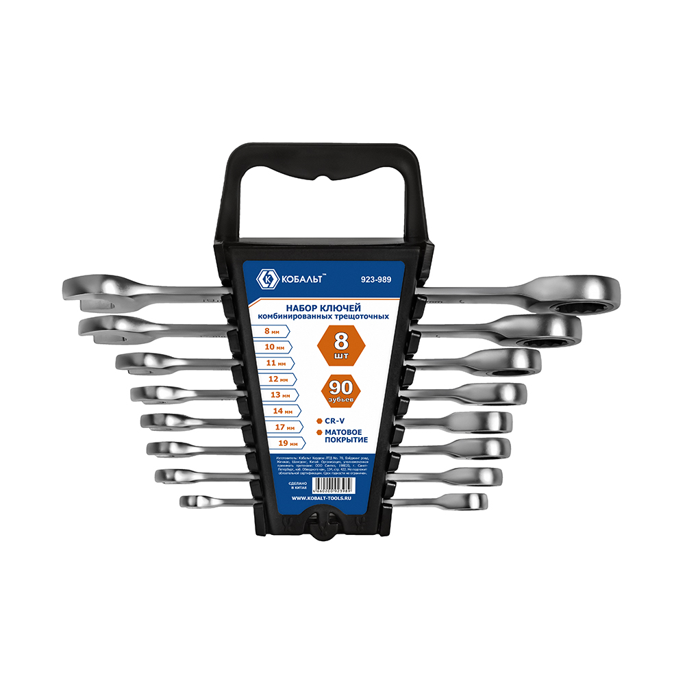 Набор ключей комбинированных трещоточных КОБАЛЬТ 8,10,11,12,13,14,17,19 мм, CR-V, трещ. механизм