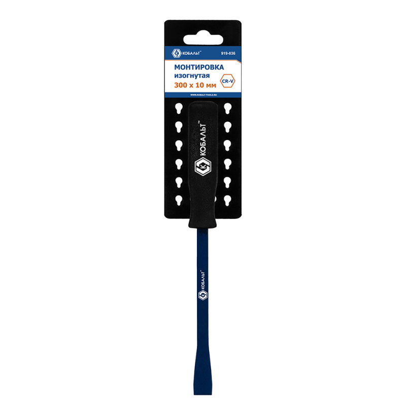 Монтировка КОБАЛЬТ изогнутая, 300 х 10 мм, хром-ванадиевая сталь, пластиковая рукоятка, подвес