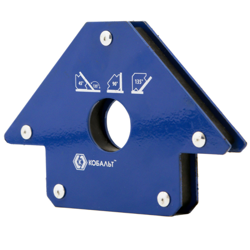 Угольник магнитный КОБАЛЬТ "Стрелка", 140 мм, на 3 угла (45, 90, 135), магнит до 45 кг (1 шт.) блист