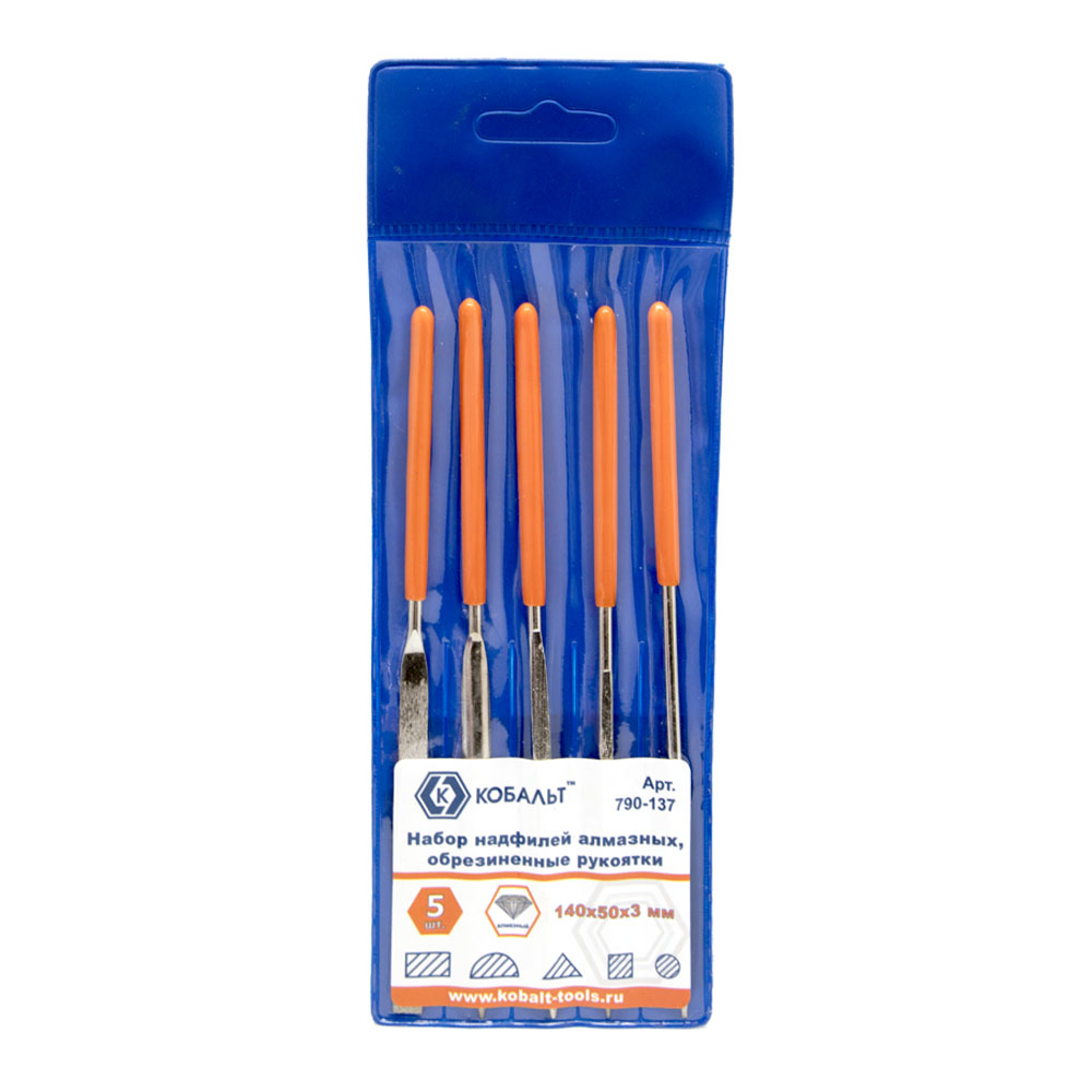 Набор надфилей КОБАЛЬТ алмазных, 140х 50х3 мм, обрезиненные рукоятки (5 шт.) чехол 1/20