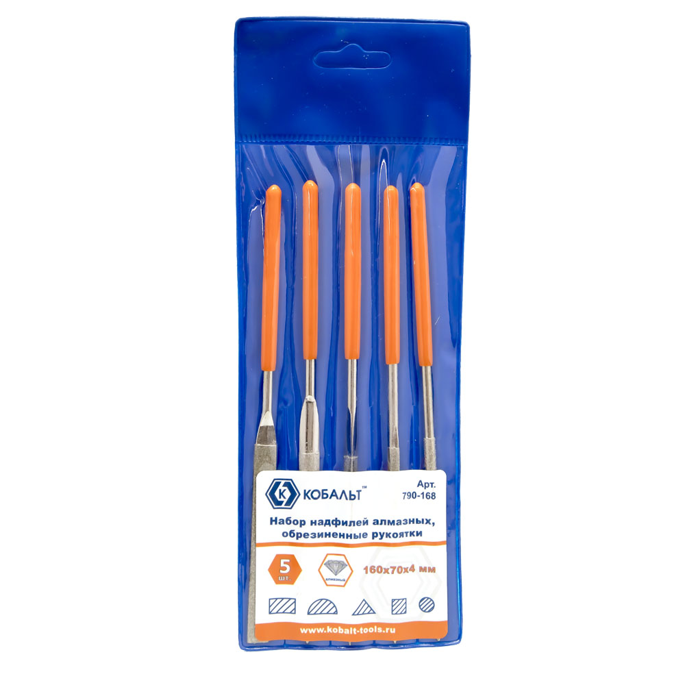 Набор надфилей КОБАЛЬТ алмазных, 160х70х4 мм, обрезиненные рукоятки (5 шт.) чехол 1/20