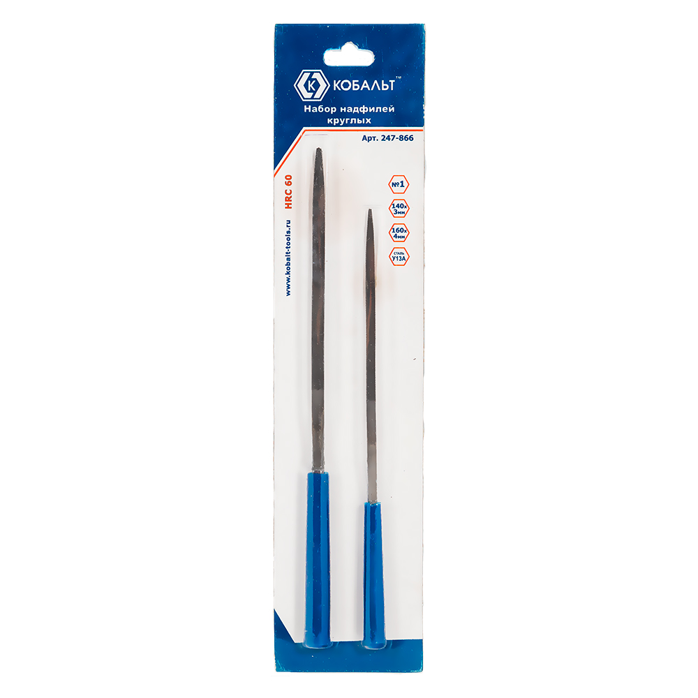 Набор надфилей КОБАЛЬТ круглых, № 1, 140х3, 160х4 мм (2 шт.) блистер 1/10